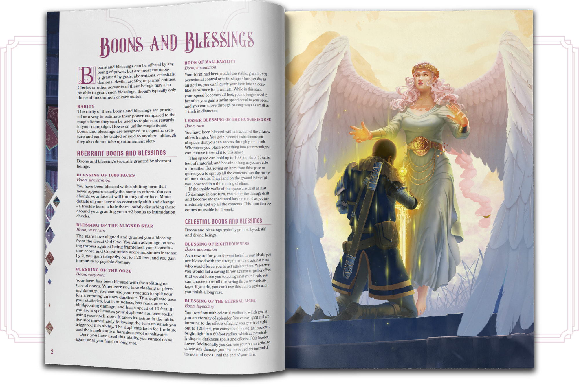 - 200+ Boons and Blessings - Magic-item-like rewards granted by beings of various power levels from gods to pixies