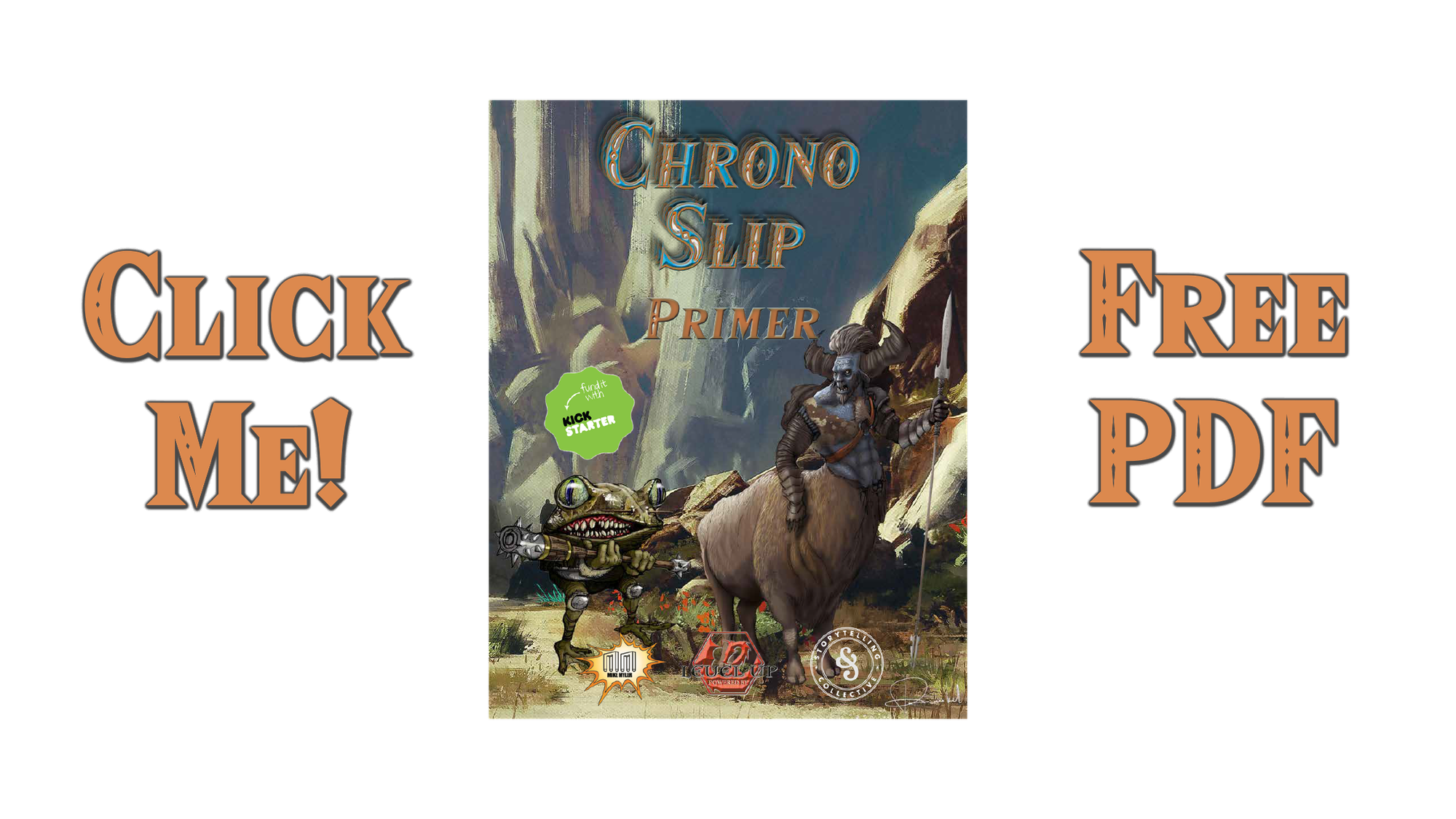 Chrono Slip is a campaign setting for Level Up: Advanced 5th Edition and D&D 5E that is heavily-inspired by time travel classics from Chrono Trigger and Zelda to Bill & Ted's Excellent Adventure, Back to the Future, and more.