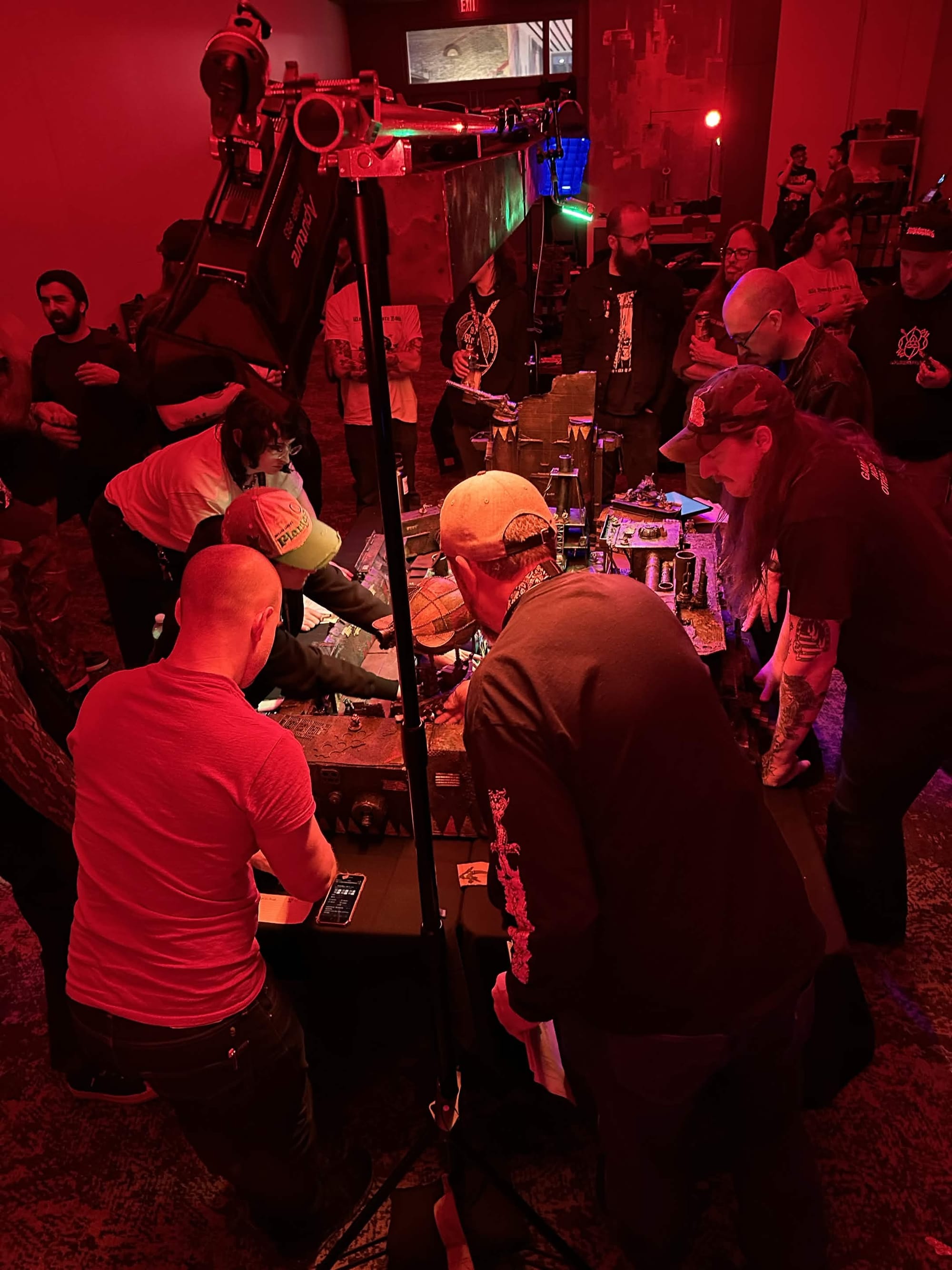 Gage from Hive Scum was nice enough to give me the opportunity to watch, and document, Brothers of Promethium 2, and it’s the sequel to an event the Hive Scum crew ran a couple years ago. It was invite-only, and the players comprised an assortment of kitbash artists, die-hard indie wargamers, DIY-oriented content creators, and an overall rag-tag group of people that seemingly should all be in a room together. Curated like a good party, everything was set up around a huge collaborative game board with multiple GMs who adjudicated a wargame that I understood about 50% of.