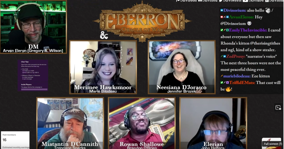 Day 3 of ArvCon will consist of one marathon game! From noon to 8 p.m. EDT, Sunday, May 25, Arvan Eleron will GM Marie Bilodeau, Jennifer Brozek, John Helfers, Brandon O’Brien, and Trendane in their season finale of the steampunk D&D 5e campaign of Eberron: Oracle of War!