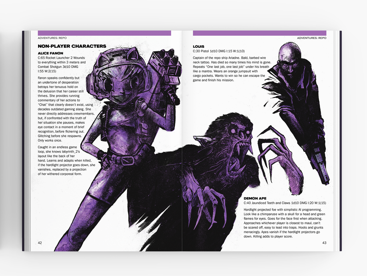 Written by D. Kenny of Nirvana on Fire and Awaiting the Burning Gods, the anthology features contributions from leading authors in the third-party Mothership scene such as Joel Hines (Desert Moon of Karth), Daniel Hallinan (Bloom, VR Dead), and DG Chapman (The Haunting of Ypsilon 14). It is also packed with all-new artwork from Vil, and gorgeous design from Golden Achiever.