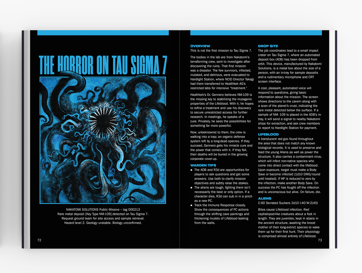 Corporate intrigue, survival horror, and alien menace collide in a massive new campaign toolkit for the Mothership Sci-Fi Horror RPG.