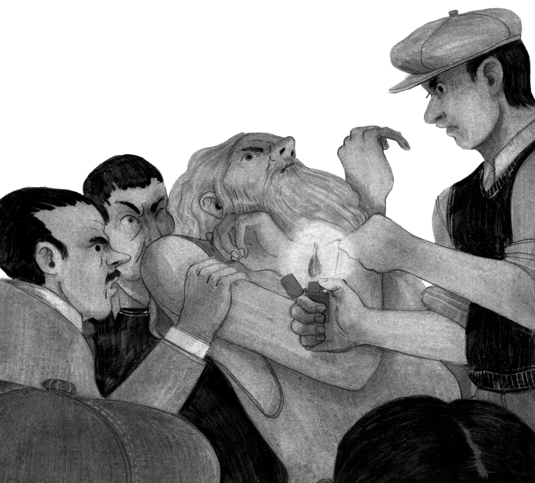 At the end of the game, each player decides whether to reveal their shameful secret or keep it hidden. Choosing to share a secret could save Barbabianca from mob justice, at the cost of forcing the village to confront the harsh truth about themselves. Refusing to confess has the players setting their secrets alight with a match or lighter, representing the burning of Barbabianca’s beard by the village mob, the erasure of the truth, and the refusal to do better.