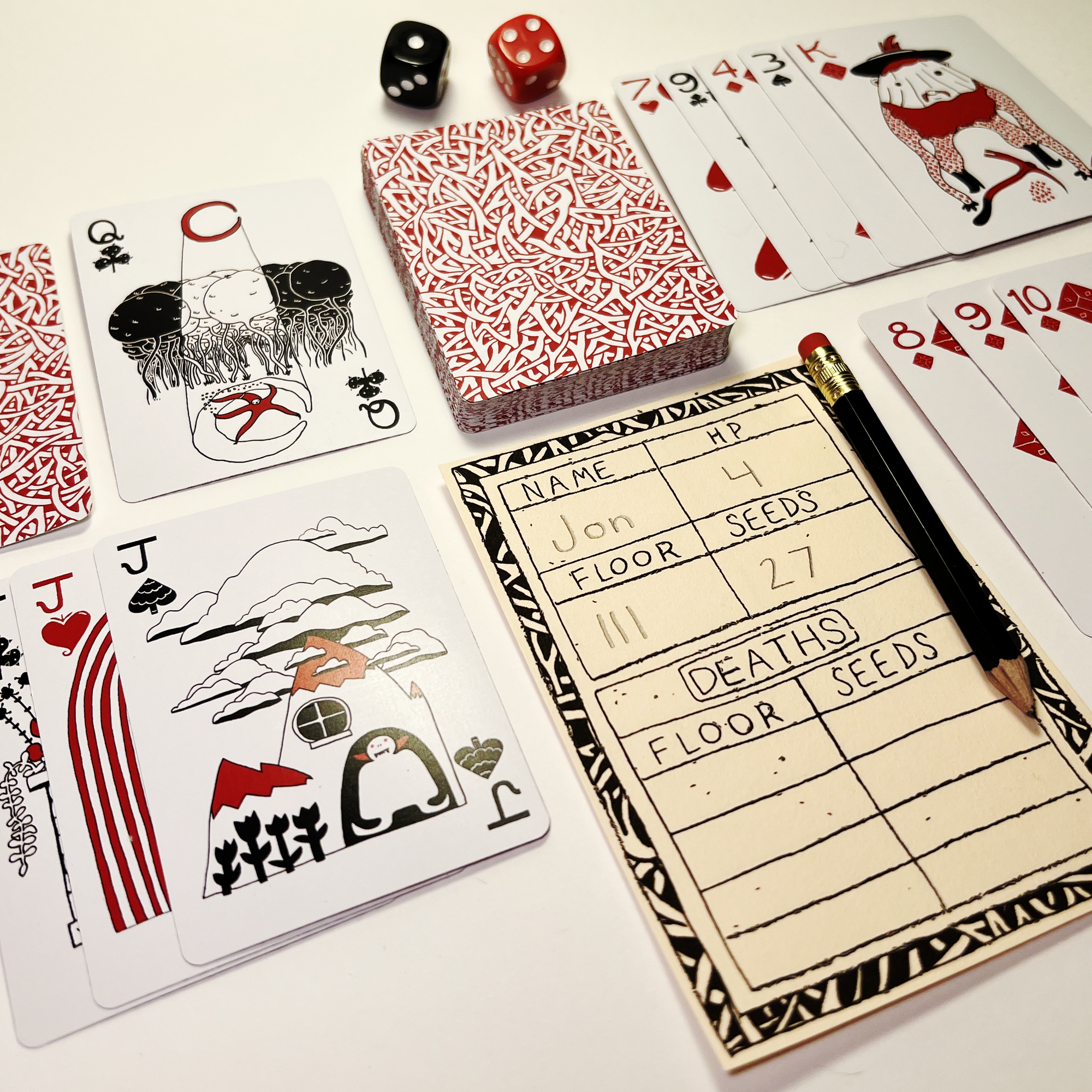 Kickstarter fulfillment starts this month and preorders are open now. All orders should ship by the end of May but if you can’t wait that long you can grab your own deck of cards and some dice and head over to the itch.io page and start playing today.