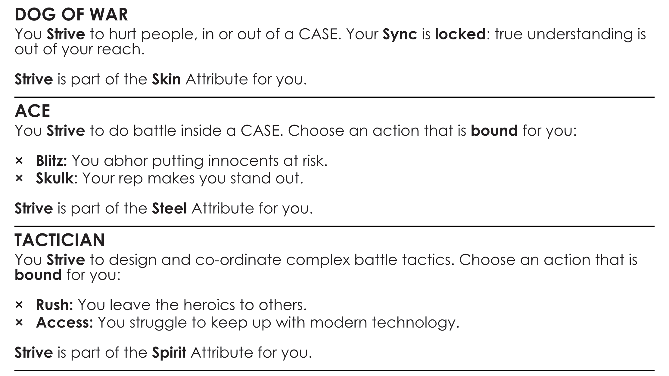 Vicious mercs, gallant rescue teams, clandestine agents; it’s all dirty work at the helm of a CASE, but someone has to do it. Go it alone as an independent Crew or pledge your squad to a Faction and their grand plans in CASE&SOUL; a high-octane, low-friction FITD system designed for short campaigns filled with mecha action.