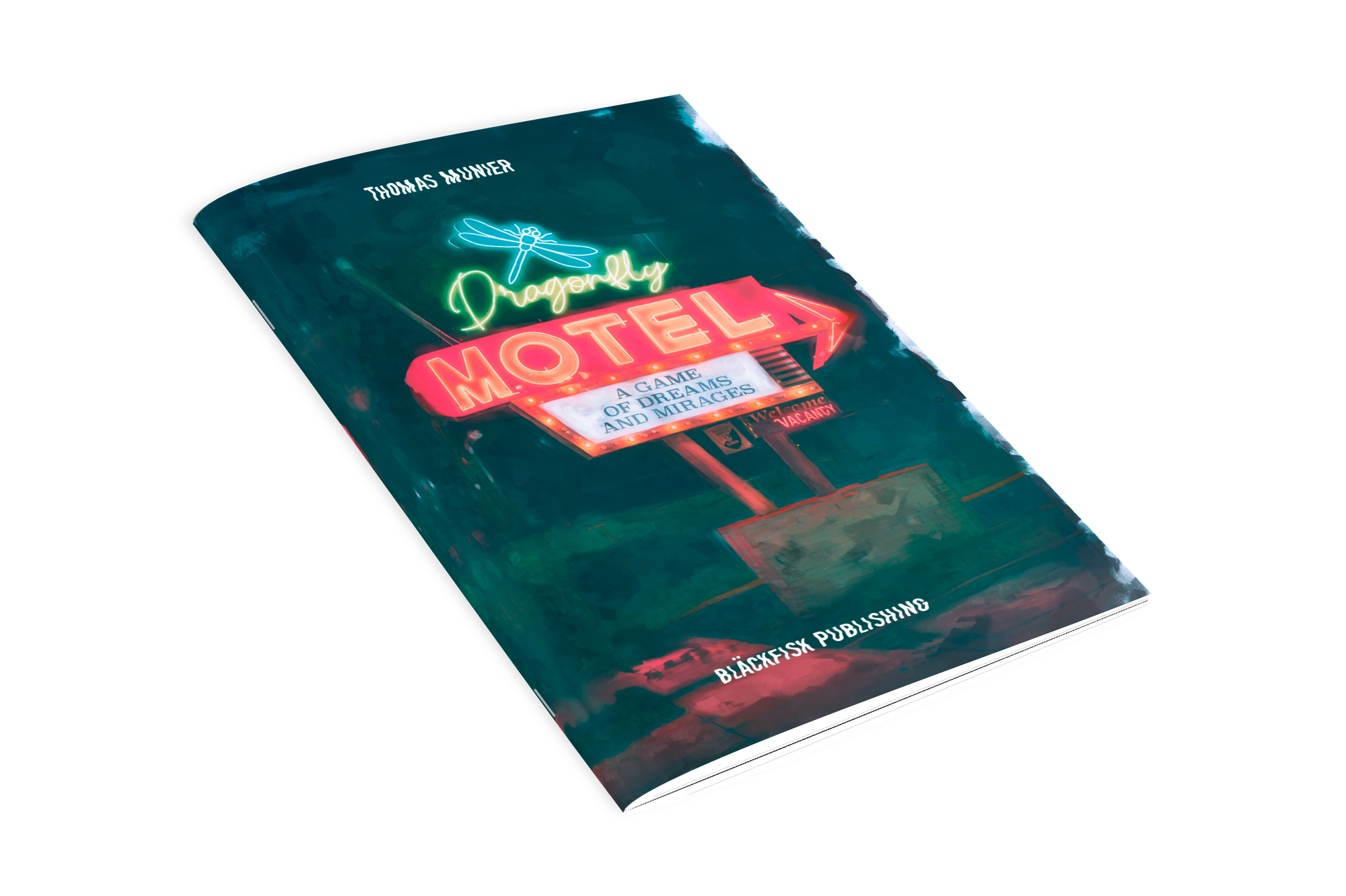 Bläckfisk Publishing is proud to announce Dragonfly Motel, a tabletop role-playing game about reckless travelers lost in a surreal trap of dreamlike slices of life. It is an English translation and revision of Dragonfly Motel, written by Thomas Munier. This imaginative French creation offers one of the more unconventional experiences in tabletop role-playing.