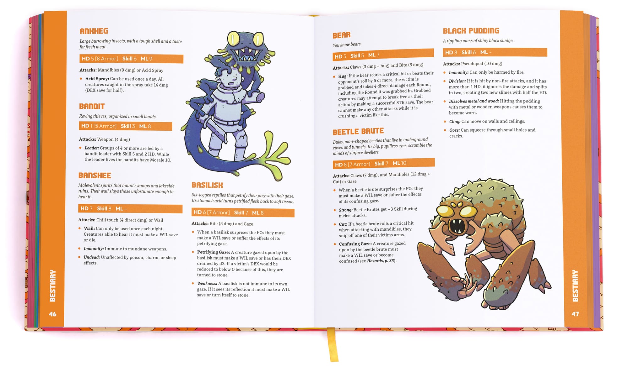 - Deadly, old-school dungeon crawling, but colorful and whimsical instead of more sepia-toned grim dark.
