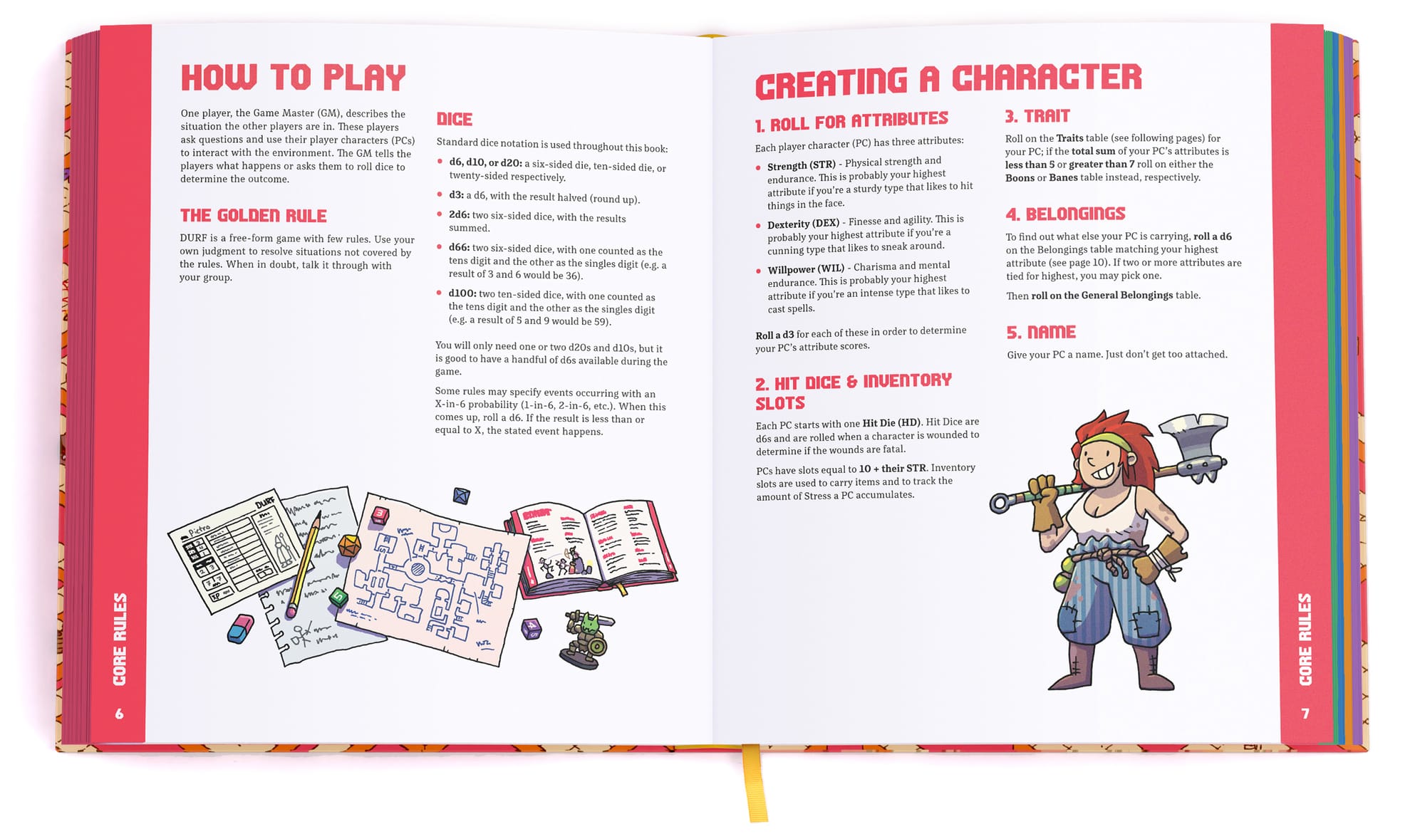 DURF Expanded is an updated and expanded version of DURF: the old-school-inspired dungeon tabletop RPG. It is written by Emiel Boven, who you might know from their work on other RPGs like The Electrum Archive or the upcoming Legacy or Kain RPG, and is edited by Ava Islam, co-author of The Electrum Archive and creator of Errant.