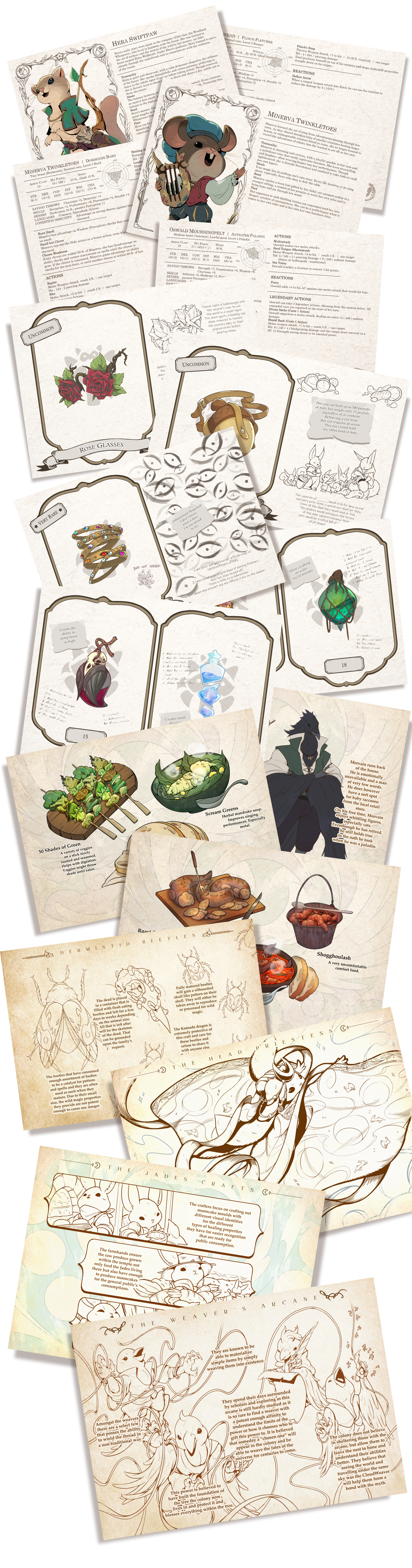 Flip through lush spreads of adventurous critters, or drop NPCs like Minerva, the feisty bard, and Hera Swiftpaw, the devoted warden, straight into your game. The book’s approachable design makes it equally friendly for new and seasoned GMs.