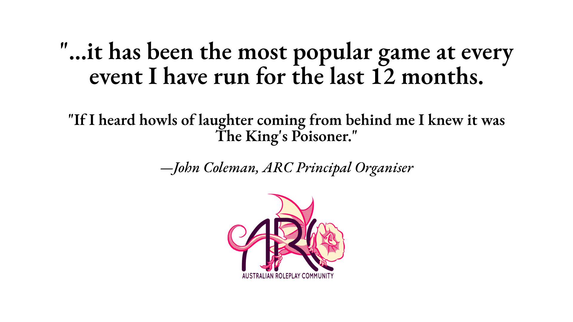 The King’s Poisoner is a thrilling out-of-the-box tabletop roleplaying game of love, loyalty, ambition & murder. With no preparation and no game master, 3–8+ players can learn as they go, scheming unforgettable stories in 1–2 hours.