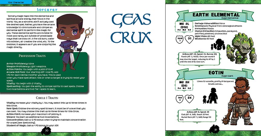 GEAS CRUX is an even more streamlined version of the game, simplified into a single 6"x9" book. This is a perfect version to learn the game, to teach younger or new players, or for those who want a very rules-lite system.