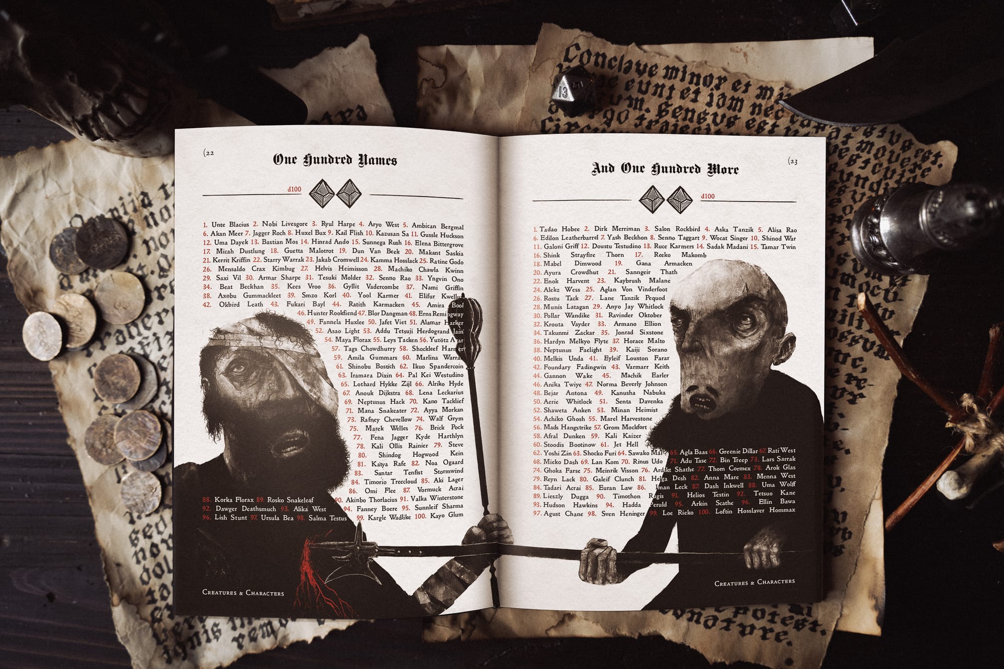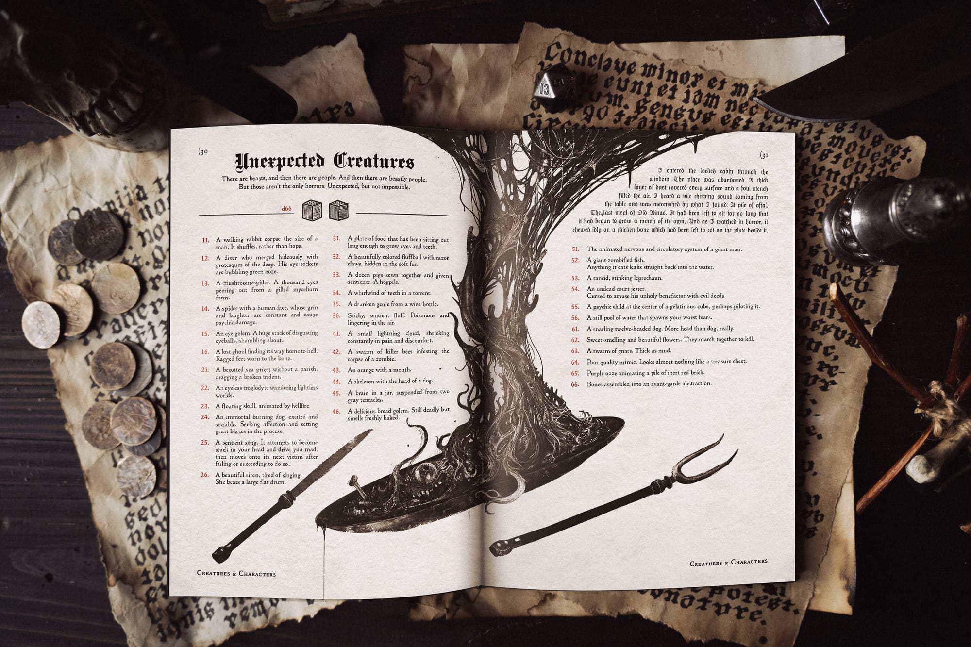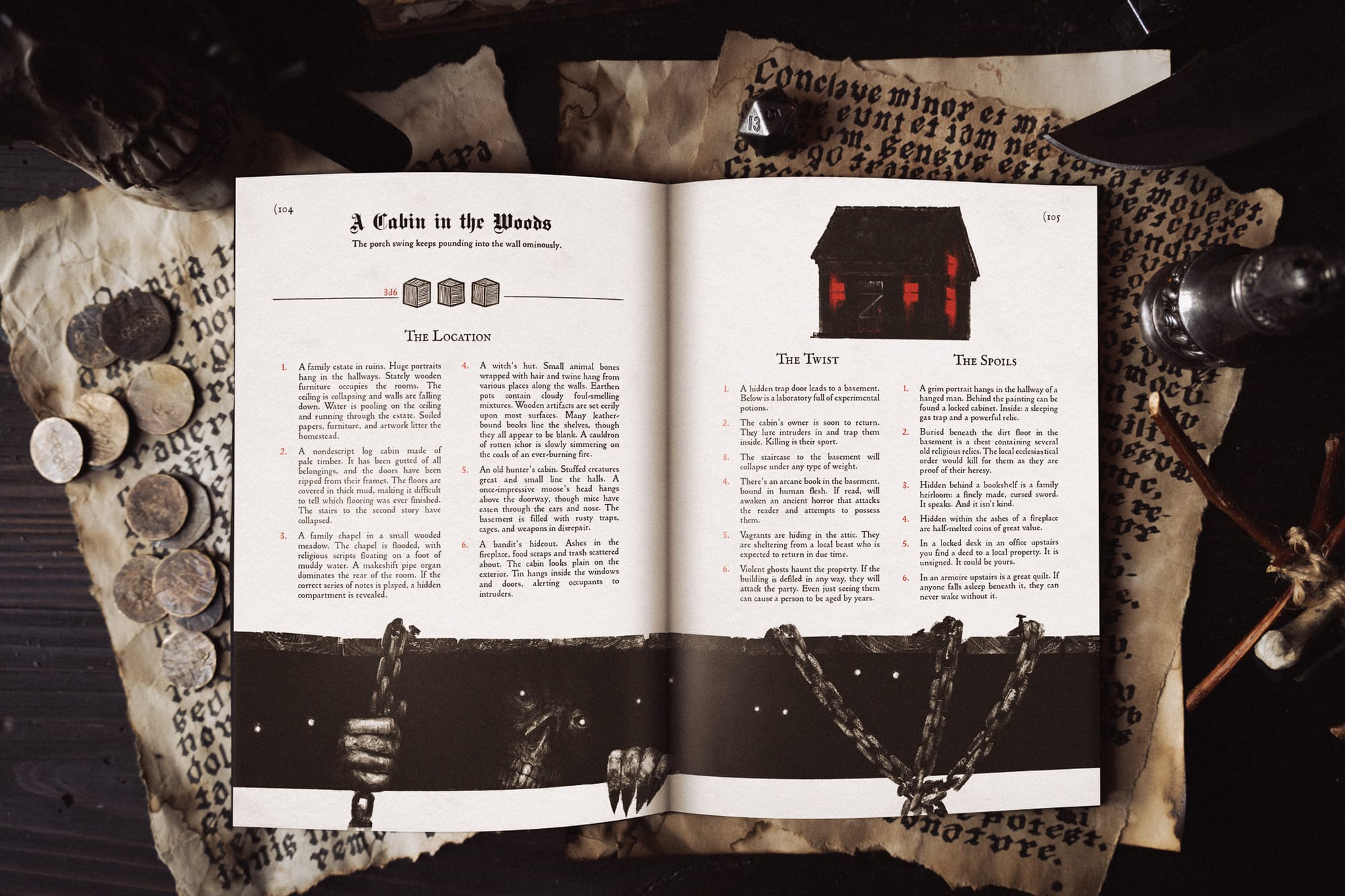 “We made the book that I want to have with me at the gaming table,” designer and co-author Christopher Drellow says, “there are literally thousands of ideas in here, and it’s organized so that I can easily add a new monster, treasure, trap, potion or character to my games immediately–fresh ideas and random chance to keep the session interesting.”