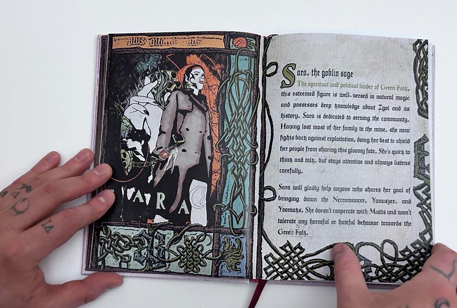 Six playable classes (Street Fighter, Tinkerer, Yoomak, Smuggler, Coiner, Charlatan), infinite possibilities for adventures thanks to the abundance of narrative hooks and random tables, and even a roguelike mode for snappy and streamlined experiences. Slav Borg uses the Mörk Borg ruleset but it’s much more than a simple hack. It’s a unique, elaborate game, a mixture of fantasy tropes with Y2K aesthetics, all in a fully-colored book, 180 pages inspired by Medieval illuminated manuscripts and illustrated by three amazing artists.