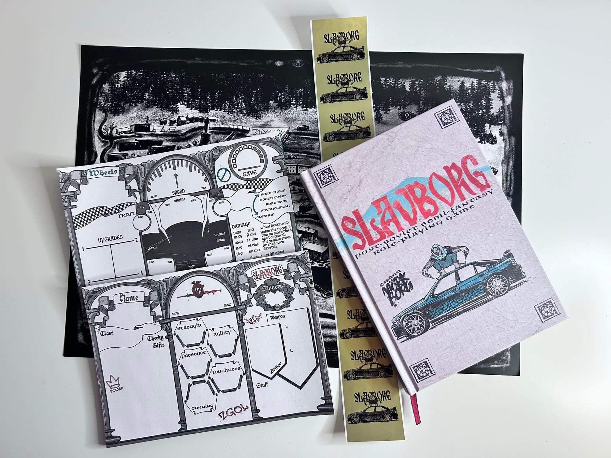 Slav Borg provides a unique setting, inspired by the bandit borderlands of Poland, Germany, and Czechia in the wild 90’s and 00’s. Smugglers and thieves called Yoomaks are running free, scams are getting out of hand, and the regular greenskins suffer from the mysterious curse cast down by the Necromancer.