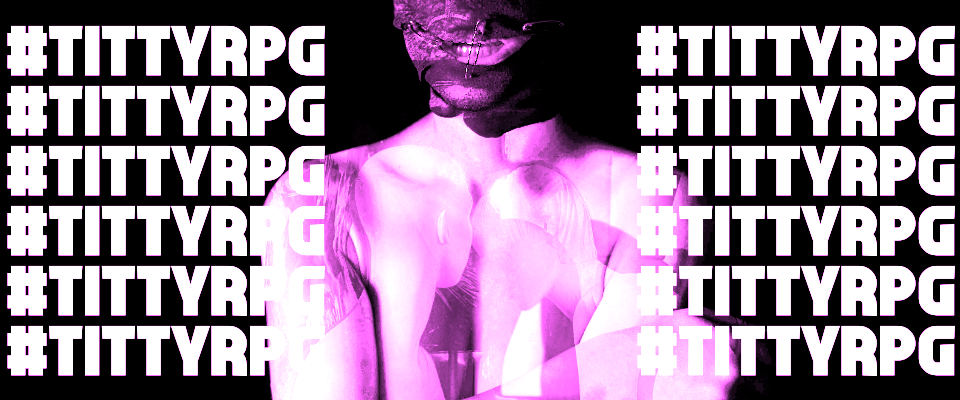 The page for Titanomachy RPG's #tittyrpg game jam (another wonderful place to source your die-activated smut) clarifies that 'as long as you're not a bigot or fascist,' all are welcome to make a tittyRPG. But it clarifies an additional rule for cishet persons: since their sexuality is not a target of systemic violence by the heteronormative status quo, their game has to be about something other than sexuality or gender, one of the many other loci of threat against the system.