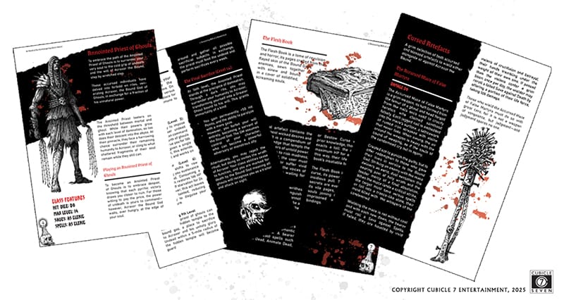 An OSR-inspired zine packed with exciting adventure locations, accursed artefacts, new classes and more! In Thrall to the Everhungering Ghoul Sword is made with passion for Players and GM’s alike, looking to bring the Damned God of Ghouls into their games!
