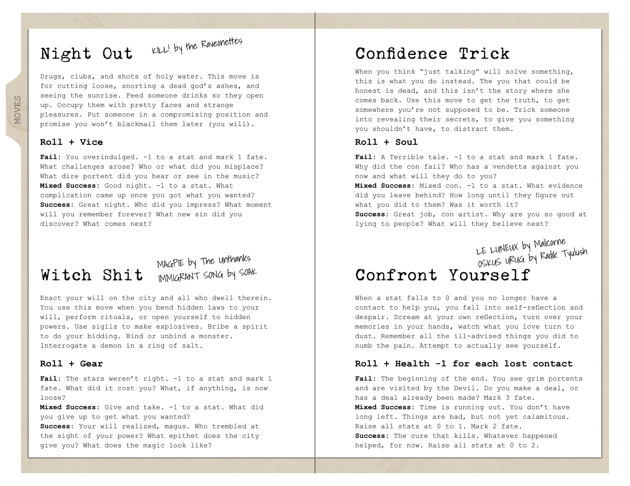 You are a private investigator who does odd jobs for odd people. You bribe ghosts, track down runaway angels, and cover up occult phenomenon as an occasional contractor for the External Containment Bureau. You know a million little secrets, and are fueled by spite and imported cigarettes.