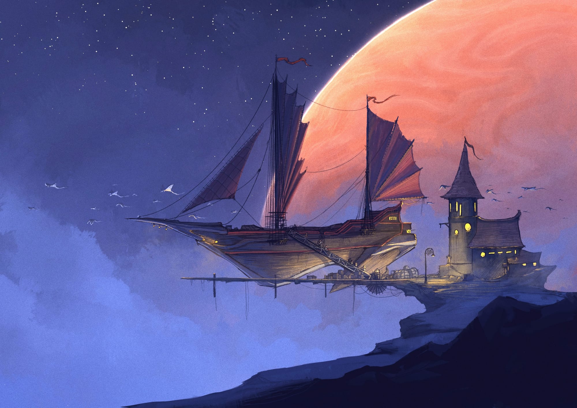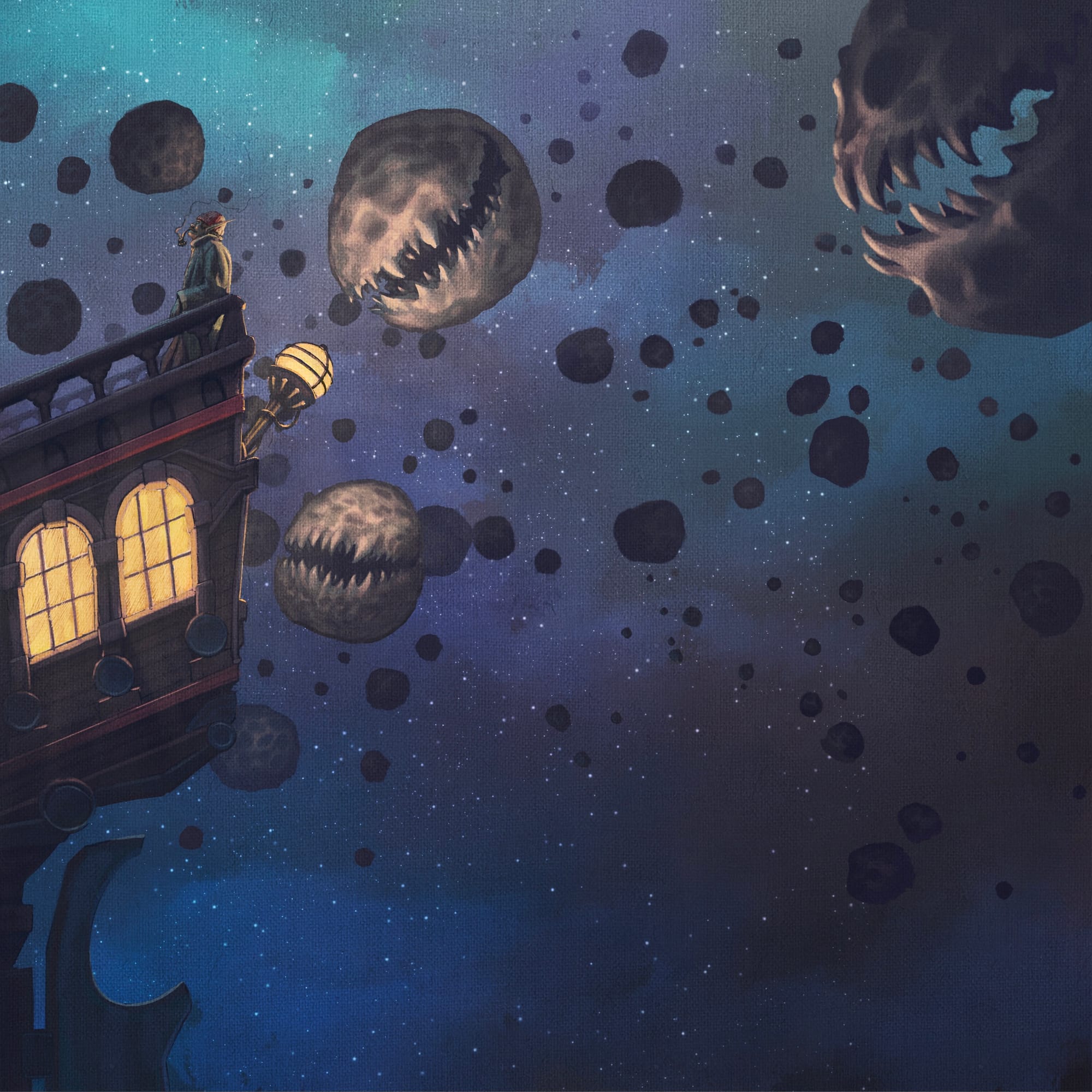 A shining oak galleon glides through the vast blackness of The Beyond, drifting along the eddies of a Siltstream as cosmic winds catch in its majestic solar sails. The captain holds a looking glass with a single tentacle, searching for any potential threats on their path to a nearby trading planet. It’s been a long journey - one that’s about to get a lot longer, as an enemy pirate vessel suddenly reveals itself off the ship’s port bow.