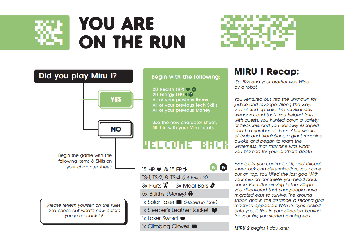 MIRU 2 (or MIIRU) is thus an anomaly. The vast majority of the rules are the same; tweaked and tightened, peppered with interesting additions, but still incontrovertibly MIRU-shaped. You can even port the gear and experience from the first game to the second. The storyline picks up one day after the events of the original solo hexcrawler and demands an identical performance — move, loot, defeat God. The devil is in the details: Hunter becomes prey, the known becomes foreign, and vengeance becomes survival. It’s about as authored as solo tabletop gets.