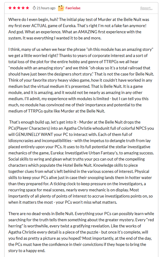 Much Awaited Murder at the Belle Nuit Mystery Module Released for Eureka: Investigative Urban Fantasy
