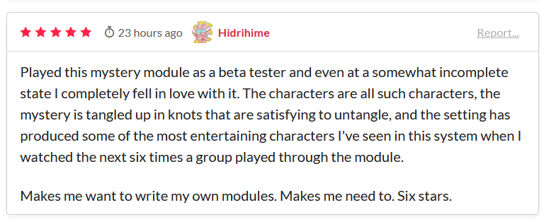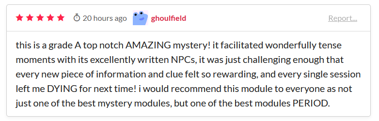The reviews are in! A masterpiece of a mystery module is now available on itch.io!