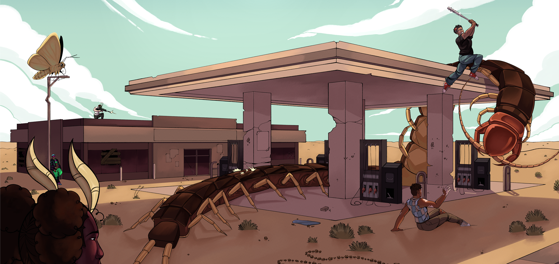 Play as a human in a post-apocalyptic world infested with giant mutant bugs in Paratype, a 3-5 player RPG about survival and adaptation. Splice your DNA with that of the new insect overlords to gain various mutations to help tackle your new ever changing environment.
