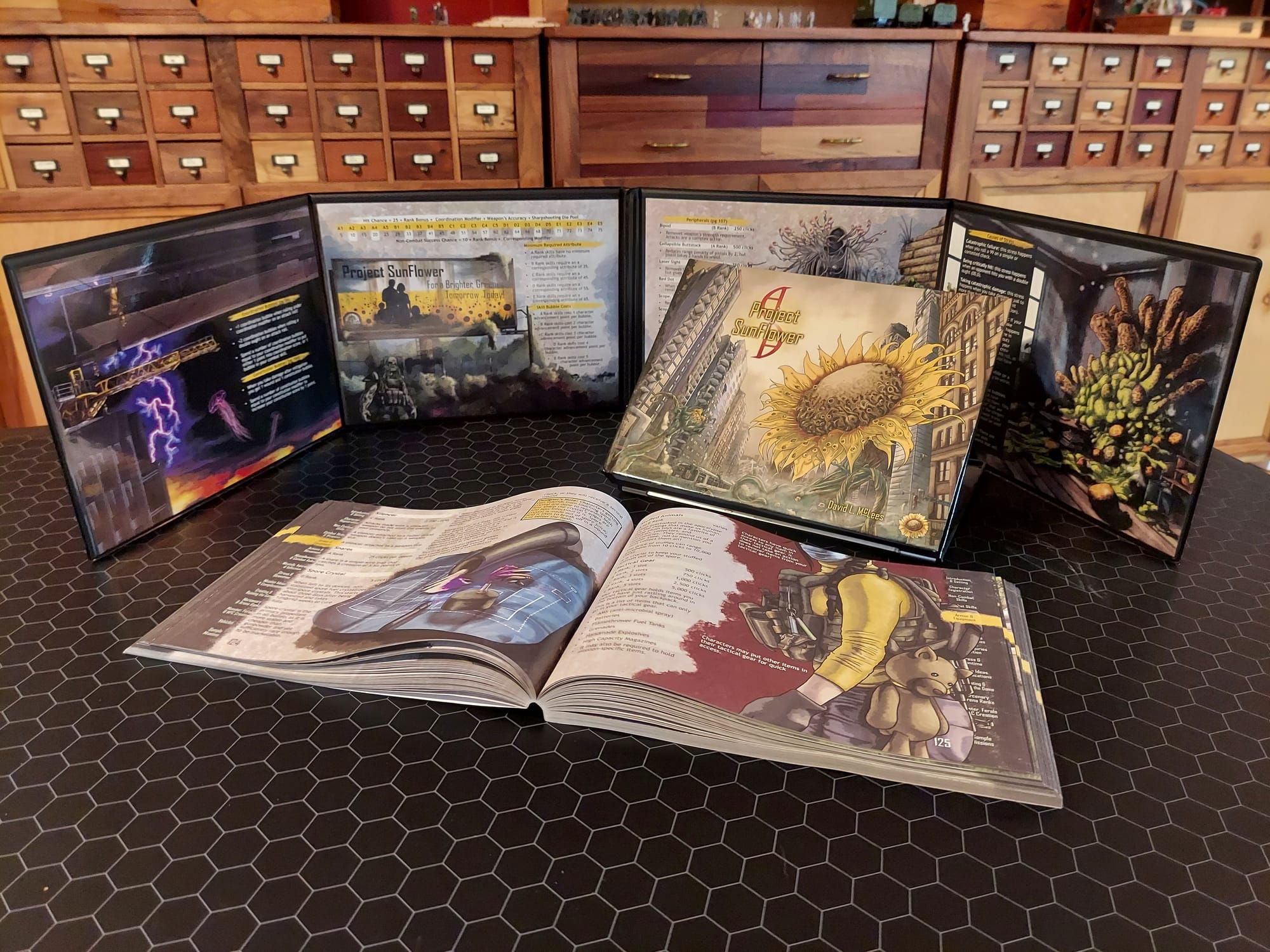 Project SunFlower has a unique game engine that uses 10-sided and percentile dice. Don’t blink because the gameplay is fast and engaging!