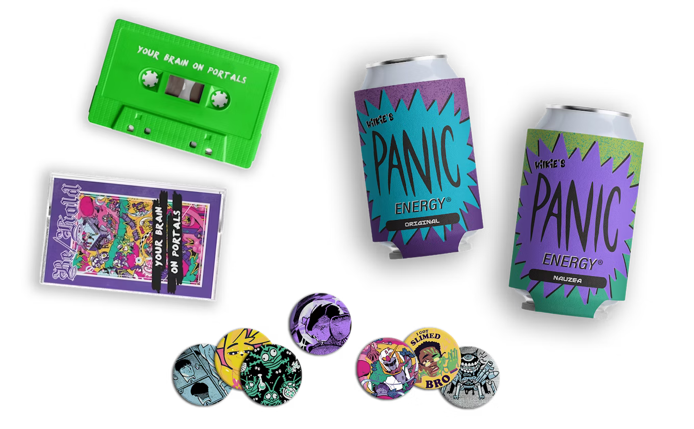 - More Cool Stuff, including POGs, a new soundtrack on cassette, and official PANIC® Energy can koozies.