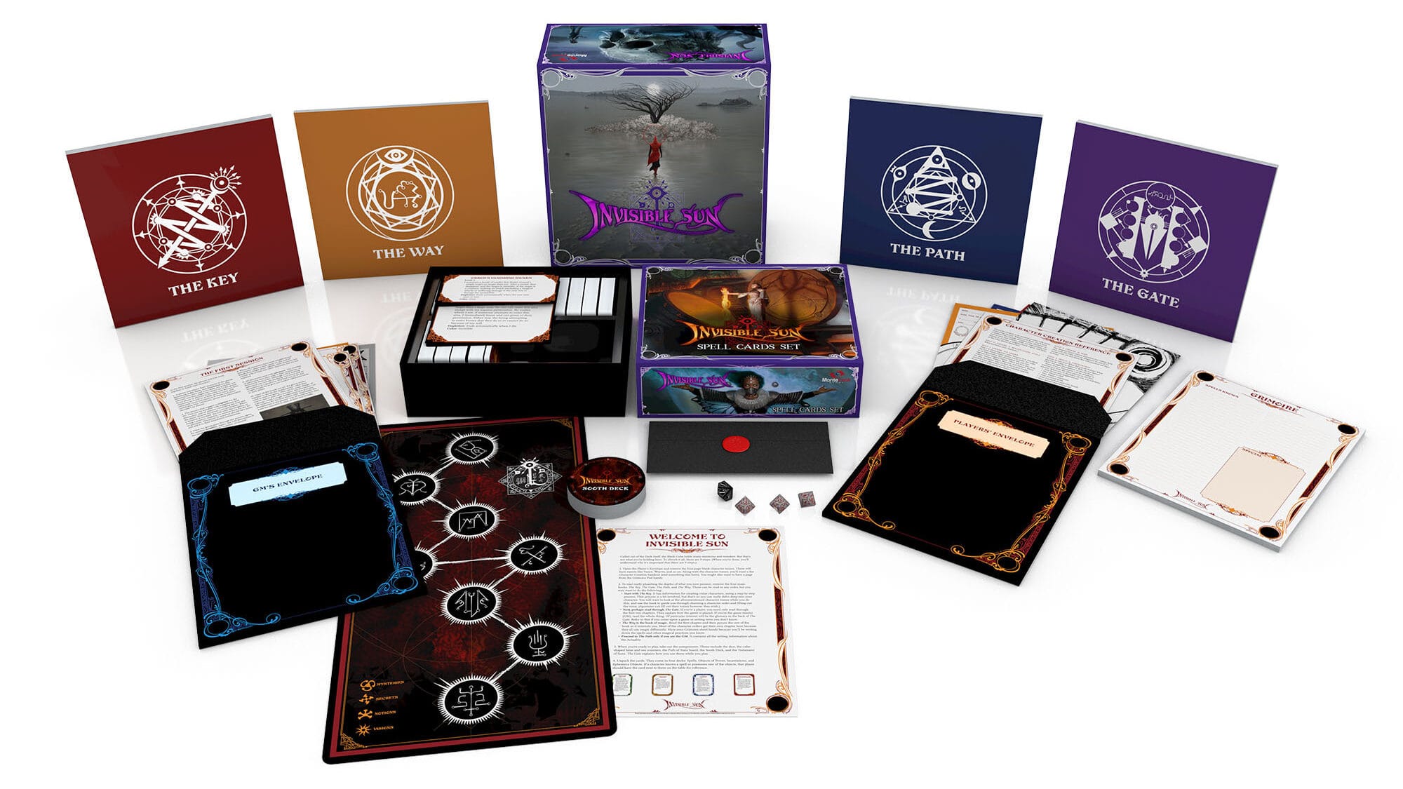 One forthcoming product of this sort is Invisible Sun: Indigo—a hefty boxed RPG with multiple books that also contains dice, a playmat, hundreds of cards, and numerous other components. It’s an expensive game to make, and adding high tariffs to its cost is ruinous. To minimize the impact of tariffs, we’re planning to decentralize production.