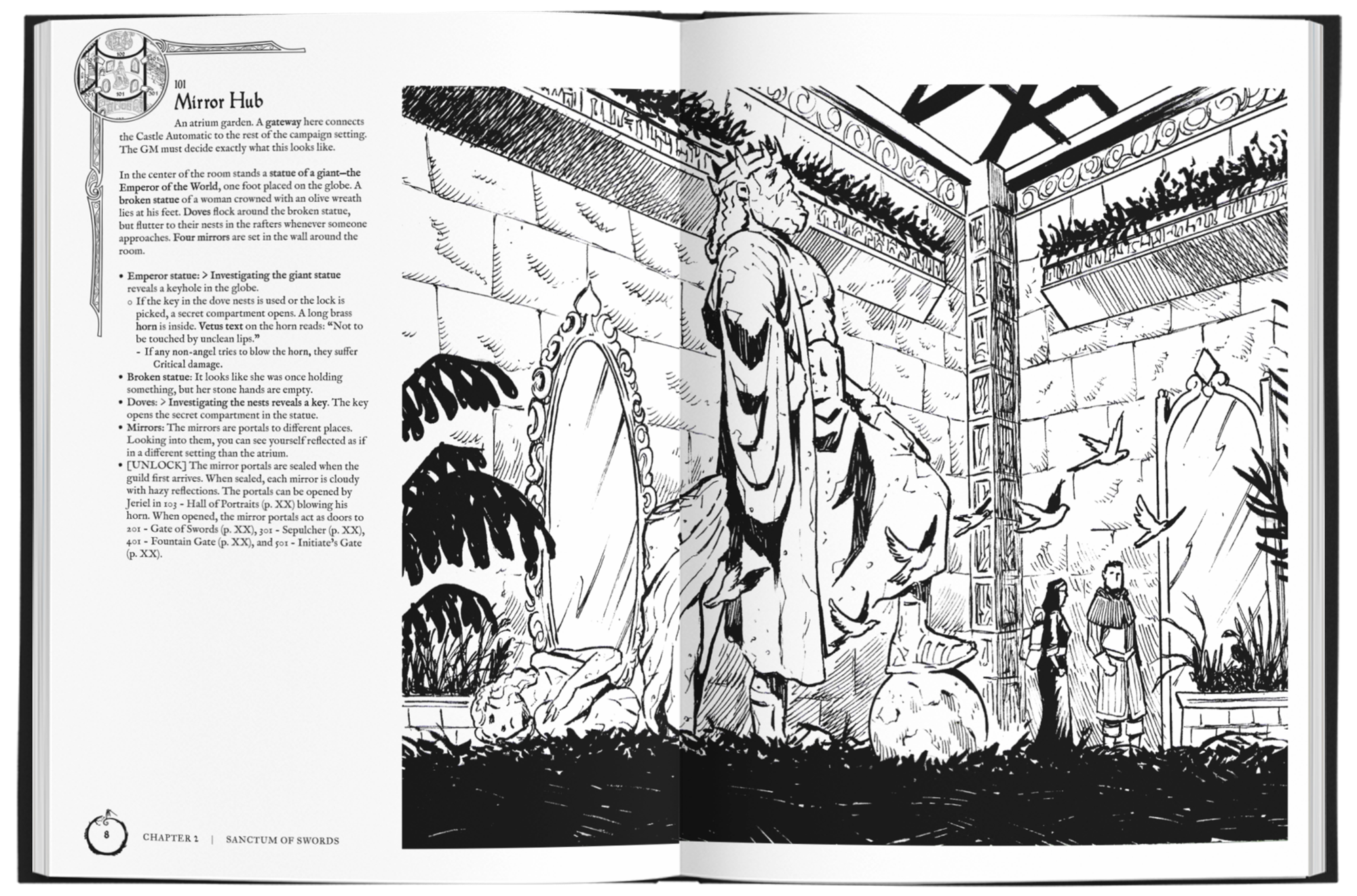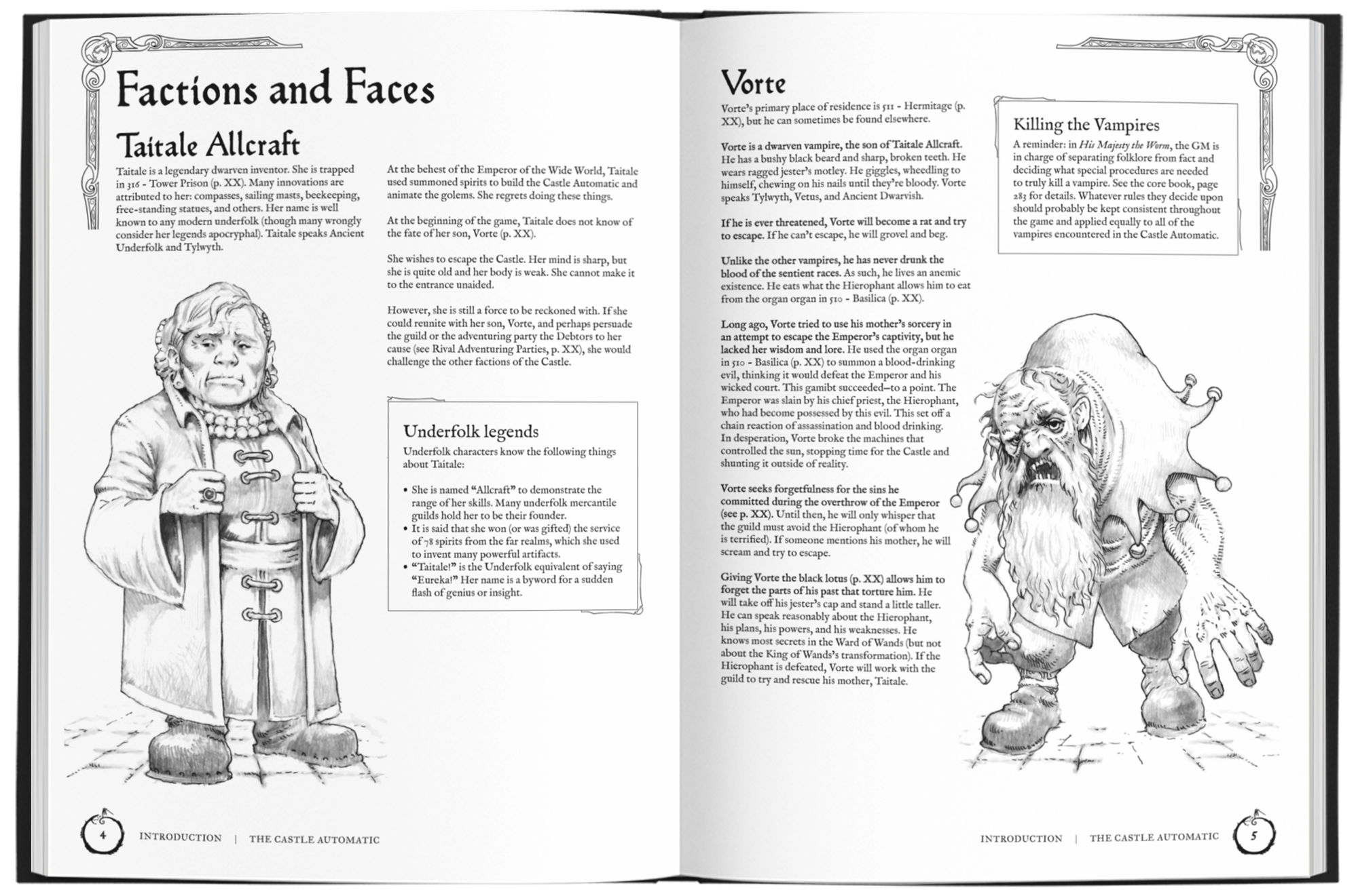 First things first: The Castle Automatic is a 100+ room, 5-level Metroidvania-style dungeon designed for use with His Majesty the Worm, the 2x ENNIE-winning, tarot-based RPG. In the module, players will repair magi-mechanical engines that control the castle's sun, moon, weather, and seasons to overcome its deadly challenges.